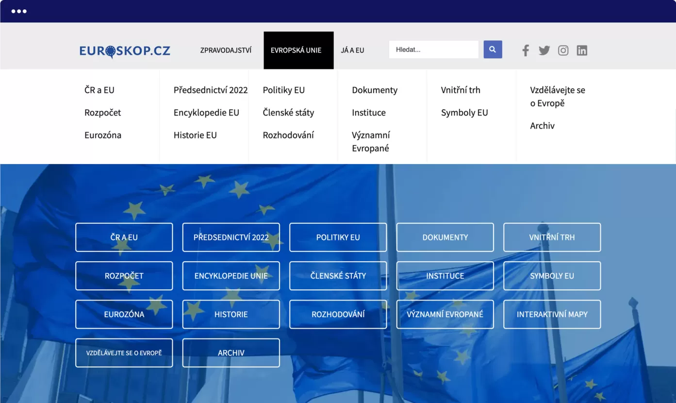 Úřad vlády spravuje portály, které nabízí návštěvníkům aktuální pohled na dění v EU. V souvislosti s organizací českého předsednictví EU bylo nutné portály v krátké době modernizovat.